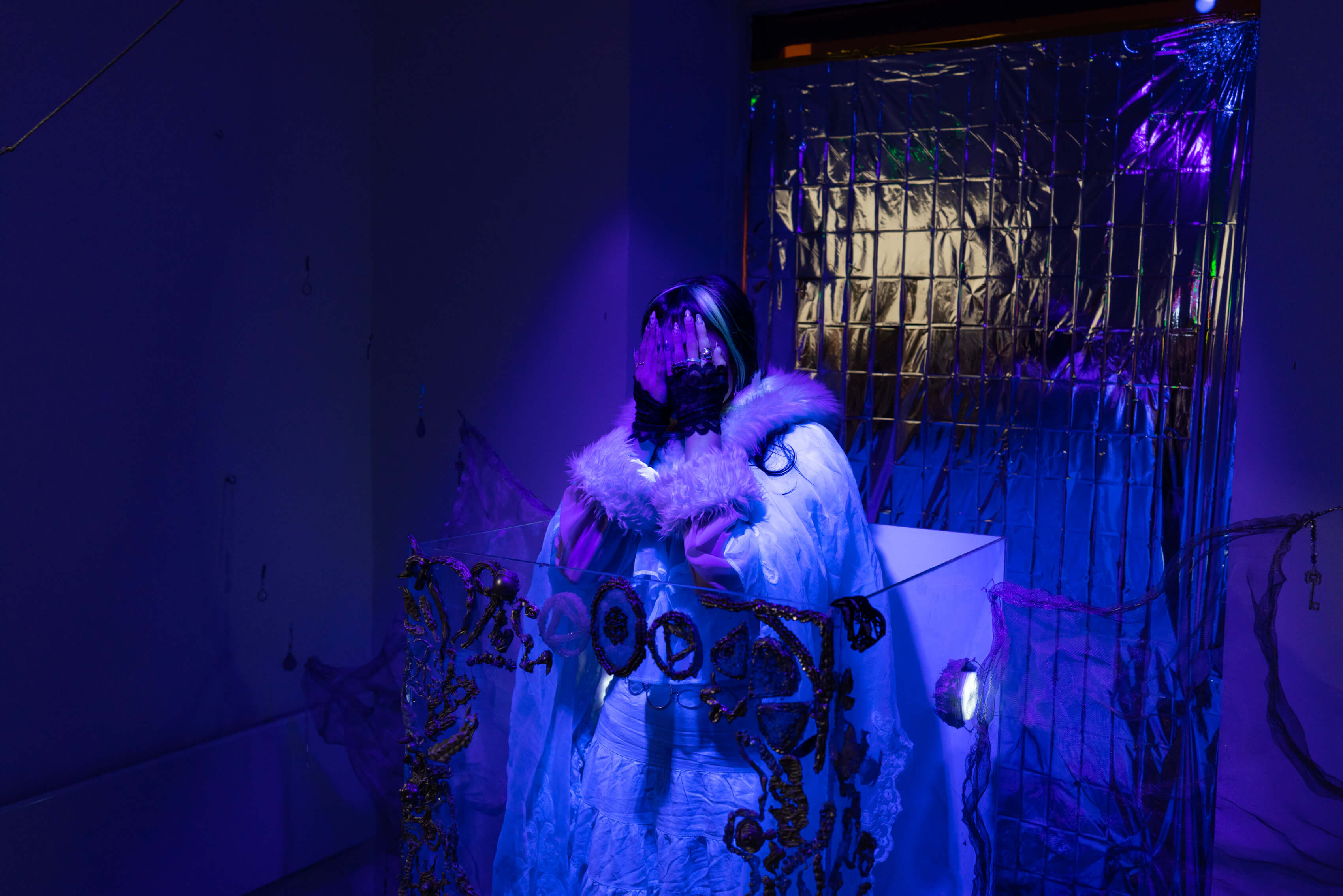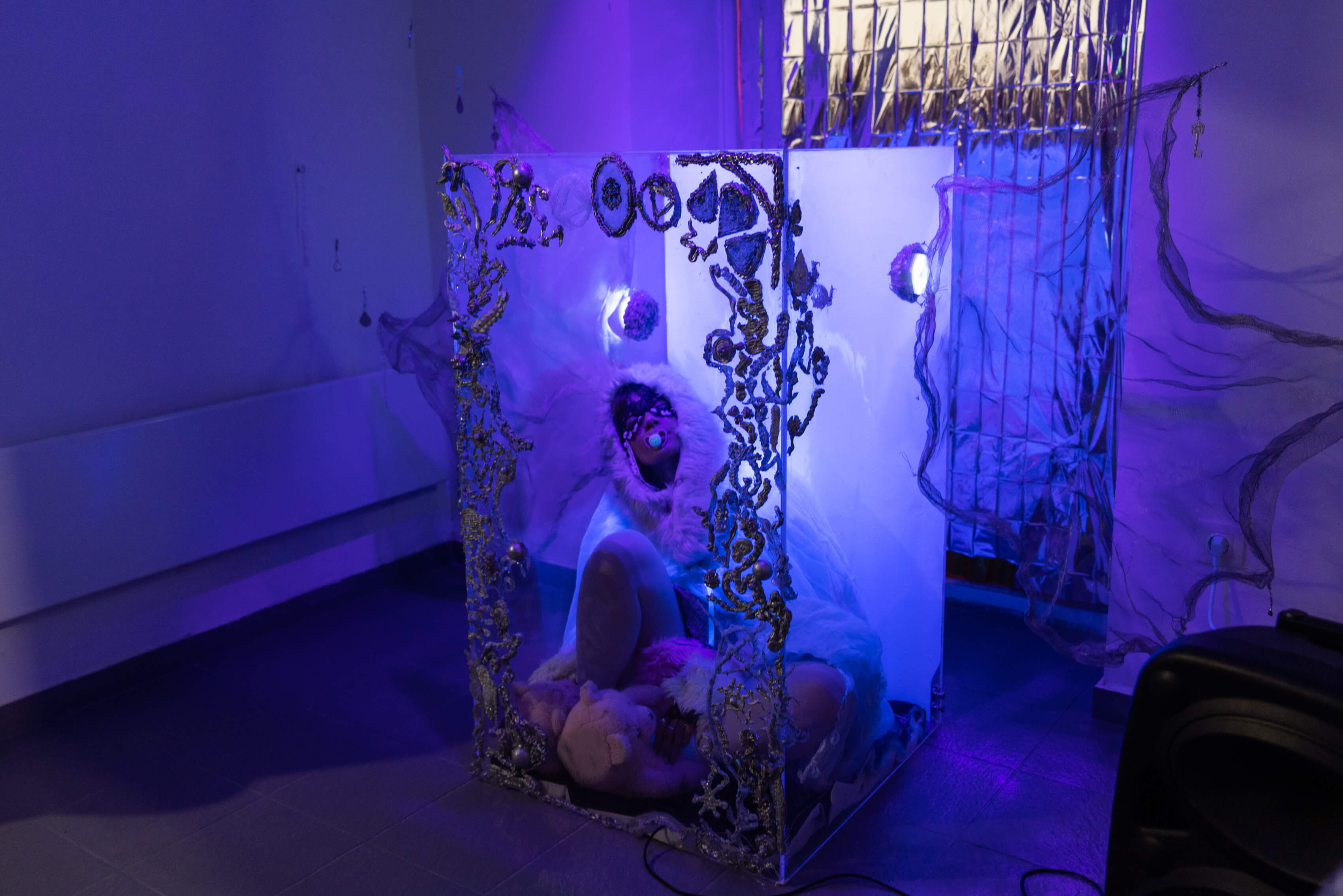 Minden közösség kialakítja a maga mitológiáit; az így létrejött történetek rendet teremtenek, biztosítják a folytonosság illúzióját, és meghatározzák, mit nevezünk valóságnak. De mi történik azokkal az emlékekkel és érzésekkel amelyek nem illeszkednek ebbe a rendbe? Hogyan őrizhető meg egy múltbeli tapasztalat úgy, hogy ne olvadjon bele a jelen narratívájába? A kiállításon szereplő művészek – Balázs Kitti, Bárány Lili, Farkas Aliz és Várhelyi Valentina – eltérő megközelítésekkel és médiumokban dolgozzák fel az álomvilágok létrehozásának különböző mechanizmusait. A térben felvillanó belső világok azonban nem az elvágyódás nosztalgikus terei, hanem az emlékezet és a képzelet aktív cselekvéseként értelmezhetők. A művek középpontjában az a kérdés áll, hogy a fikció, az énmitológiák és a személyes történetek hogyan kapcsolódnak a valóság szerkezetéhez, hiszen azok egyaránt szolgálhatnak eszközként a határátlépéshez, a csendes ellenálláshoz, az önvizsgálathoz, a meneküléshez, vagy épp a rendszerkritikához.